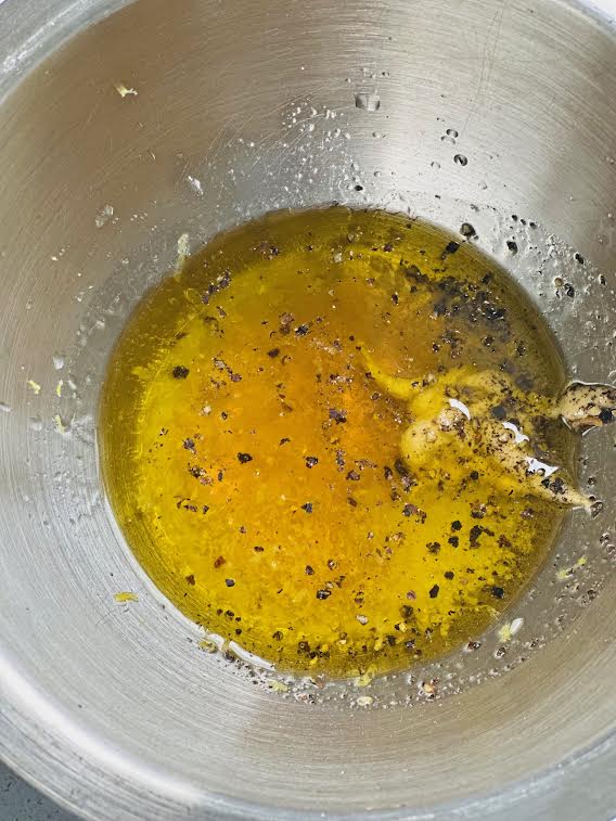 2. In a small bowl, whisk together olive oil, lemon juice, zest, honey, Dijon mustard, salt and pepper.