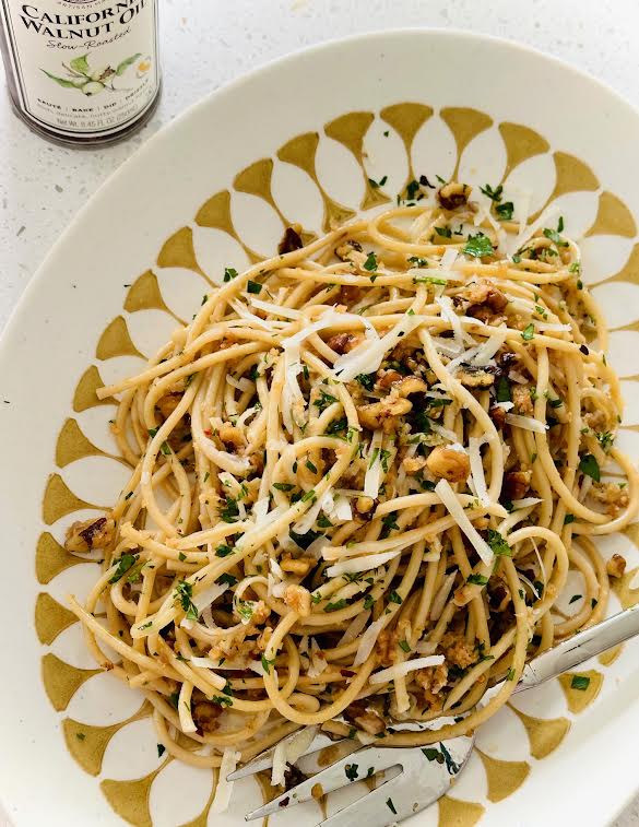 This is the kind of dish that turns everyday ingredients into something worth savoring. With its balance of rich, nutty walnuts, sharp cheese, and perfectly cooked pasta, it delivers bold flavor in every bite. It’s simple enough for a weeknight dinner – if you want to bulk it up, serve steamed or roasted vegetables on Toasted Walnut and Pecorino Bucatini