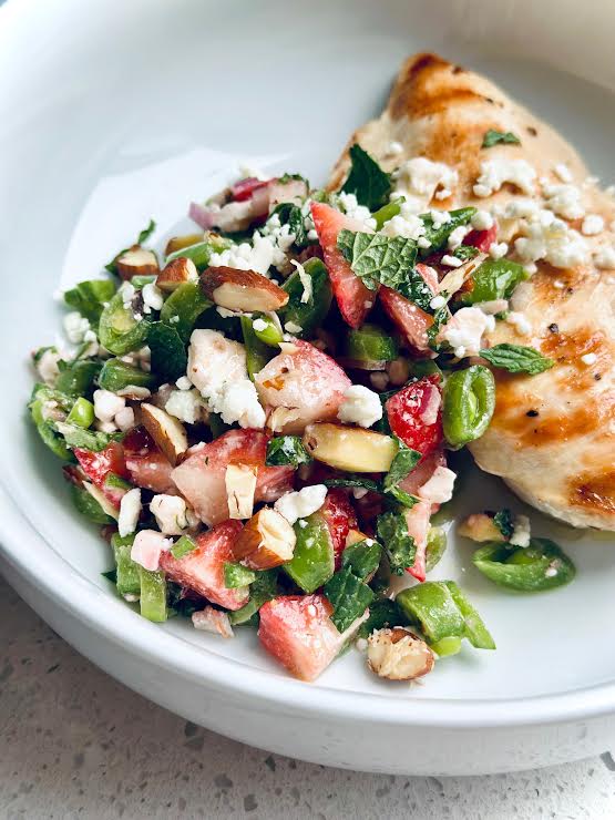 This salad is fresh, colorful and full of different flavors and textures – the kind of dish that wakes up your palate. Sweet juicy strawberries meet crisp snap peas, toasty almonds, salty feta, bright herbs and a tangy lemon vinaigrette for a super satisfying bite. It’s the perfect side for warm-weather gatherings (perfect for spring Strawberry Snap Pea Crunch Salad