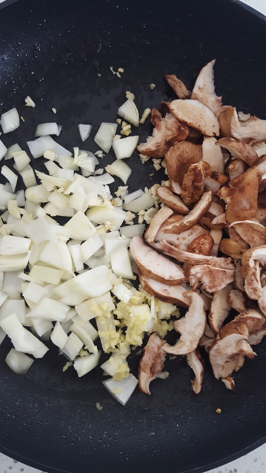 2. Add the remaining tablespoon of oil and the onion, garlic, ginger and mushrooms; cook for 5 minutes.