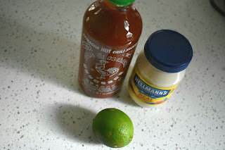 4. Meanwhile, combine the spicy mayo ingredients in a small bowl. Transfer to a serving dish.