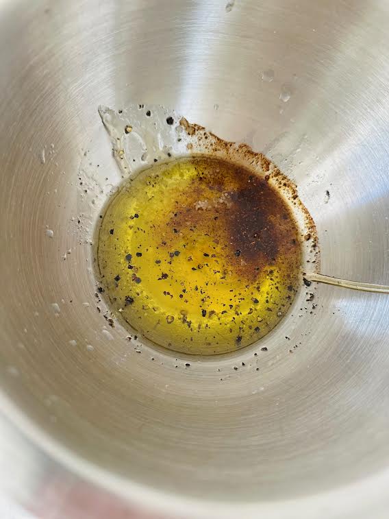 3. In a small bowl, whisk together olive oil, lime juice, honey, chili powder, cayenne, salt and pepper.