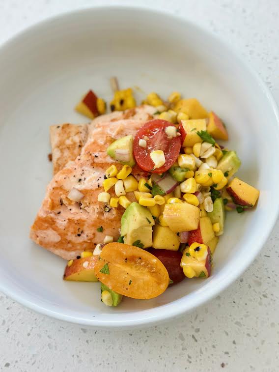 If summer had a flavor, this salad would be it. Sweet corn and juicy peaches bring sunshine to every bite, creamy avocado add richness, and a zesty chili-lime dressing ties it all together. It’s refreshing, colorful, and just the right balance of sweet, tangy, and a little spicy – perfect for backyard cookouts or a light weeknight meal paired with salmon or chicken.