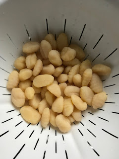 2. Place gnocchi in a large bowl and cover with boiling water. Let sit for 2 minutes, then drain.