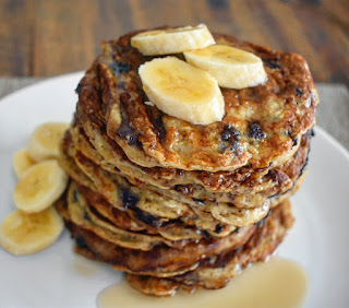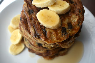 4. Serve the pancakes with sliced banana and melted nut butter or pure maple syrup drizzled over the top.