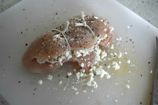2. Stuff chicken with goat cheese and tie securely with kitchen twine. Season with salt and pepper on both sides. Heat 1 tablespoon olive oil in a large oven-proof skillet over medium-high heat. Add chicken and cook for 3 minutes per side, or until golden brown. Transfer the skillet to the oven and bake the chicken for 15 minutes longer.