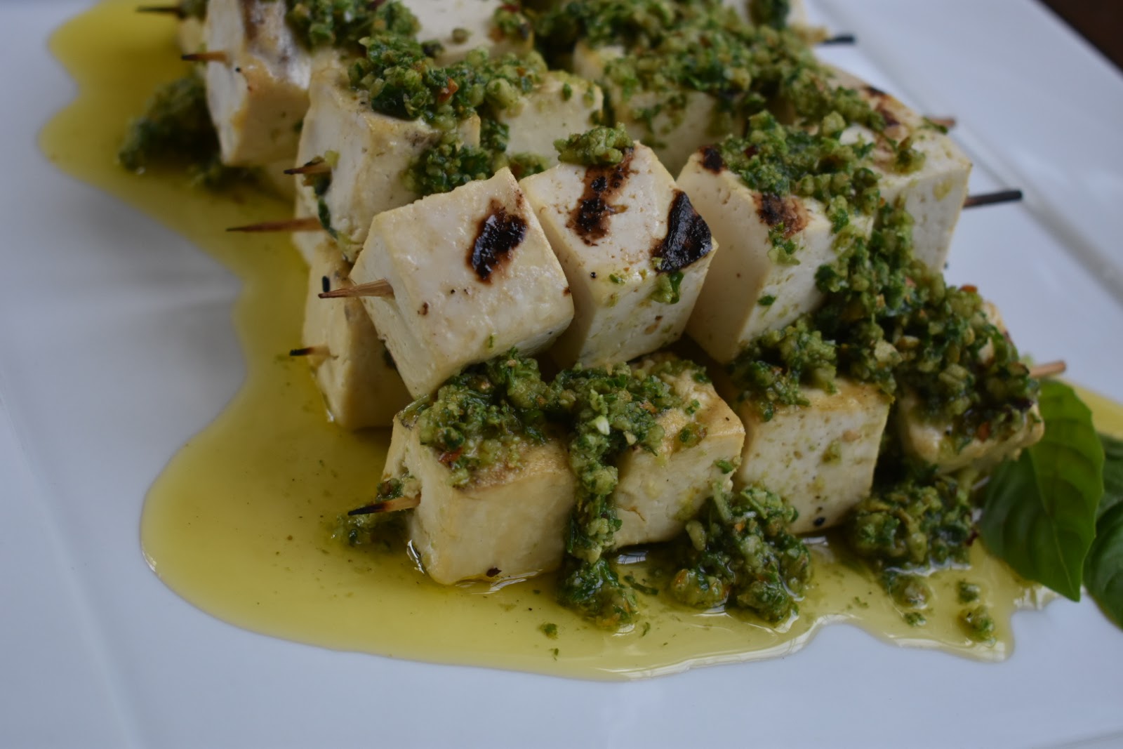 Grilled Tofu Kabobs with Spicy Basil Pesto