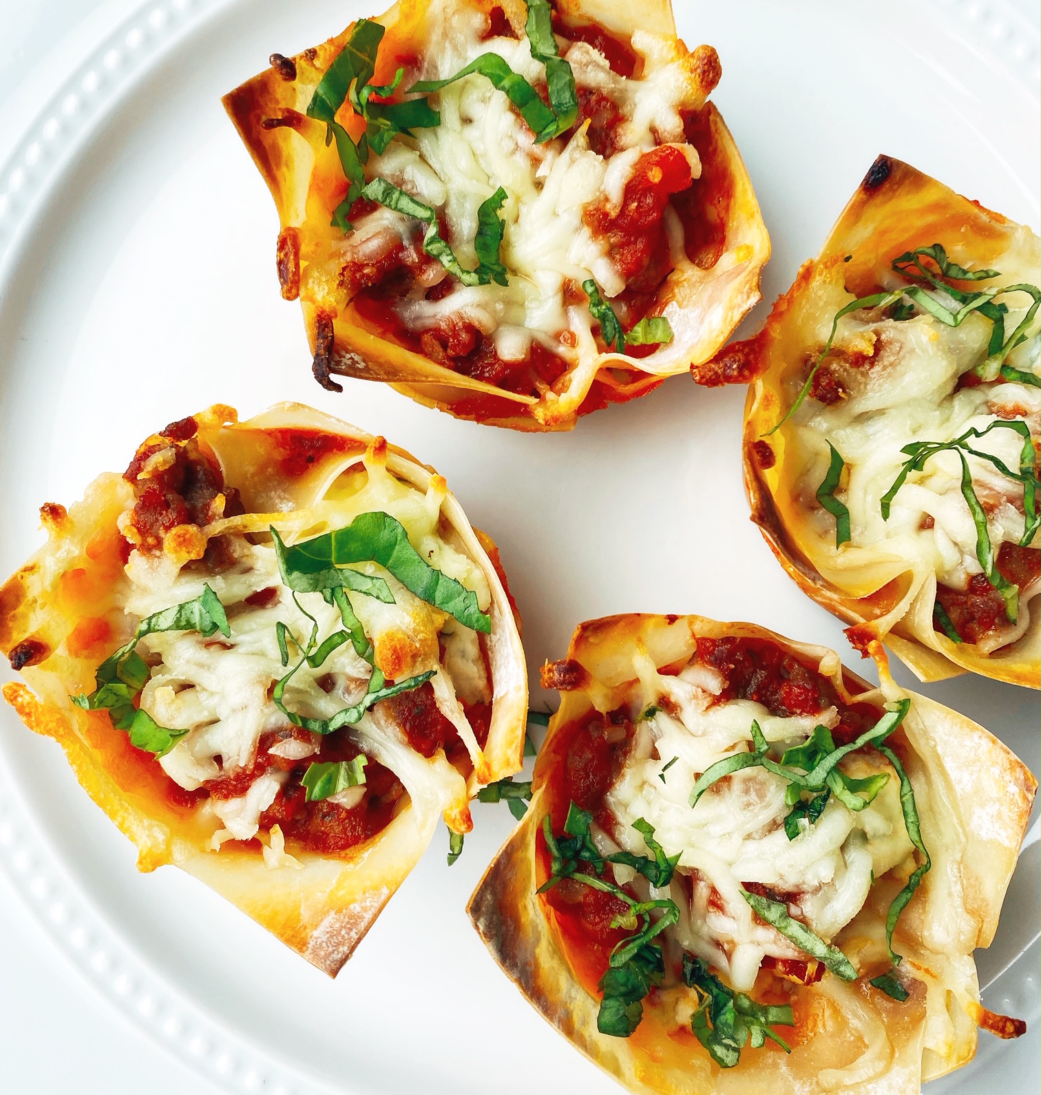 5. Bake for 15 minutes. Once out of the oven, allow the lasagna cups to sit for at least 5 minutes before removing from the tin. Serve garnished with more fresh basil.
