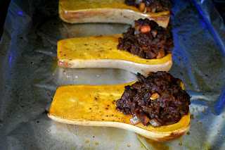 4. Scoop the beef mixture evenly into each squash well and bake for 10 minutes longer.