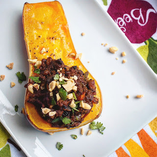 5. Once out of the oven, let the squash rest for 5 minutes, then garnish with crushed peanuts and cilantro.