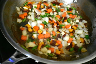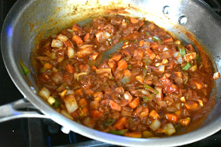 3. Add the onion, garlic, carrots and jalapeno to the pan and cook until softened, about 4 minutes. Add the remaining ingredients (minus the peanuts and cilantro) and cook for 3 minutes longer. Transfer to the same bowl as the beef and stir to combine.
