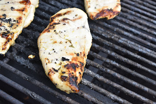 2. Remove chicken from marinade (discard marinade) and grill over medium-high heat for 5 minutes per side, or until cooked through. Rest 5 minutes.