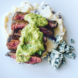 Pan-Seared Flank Steak with Blue Cheese Pesto