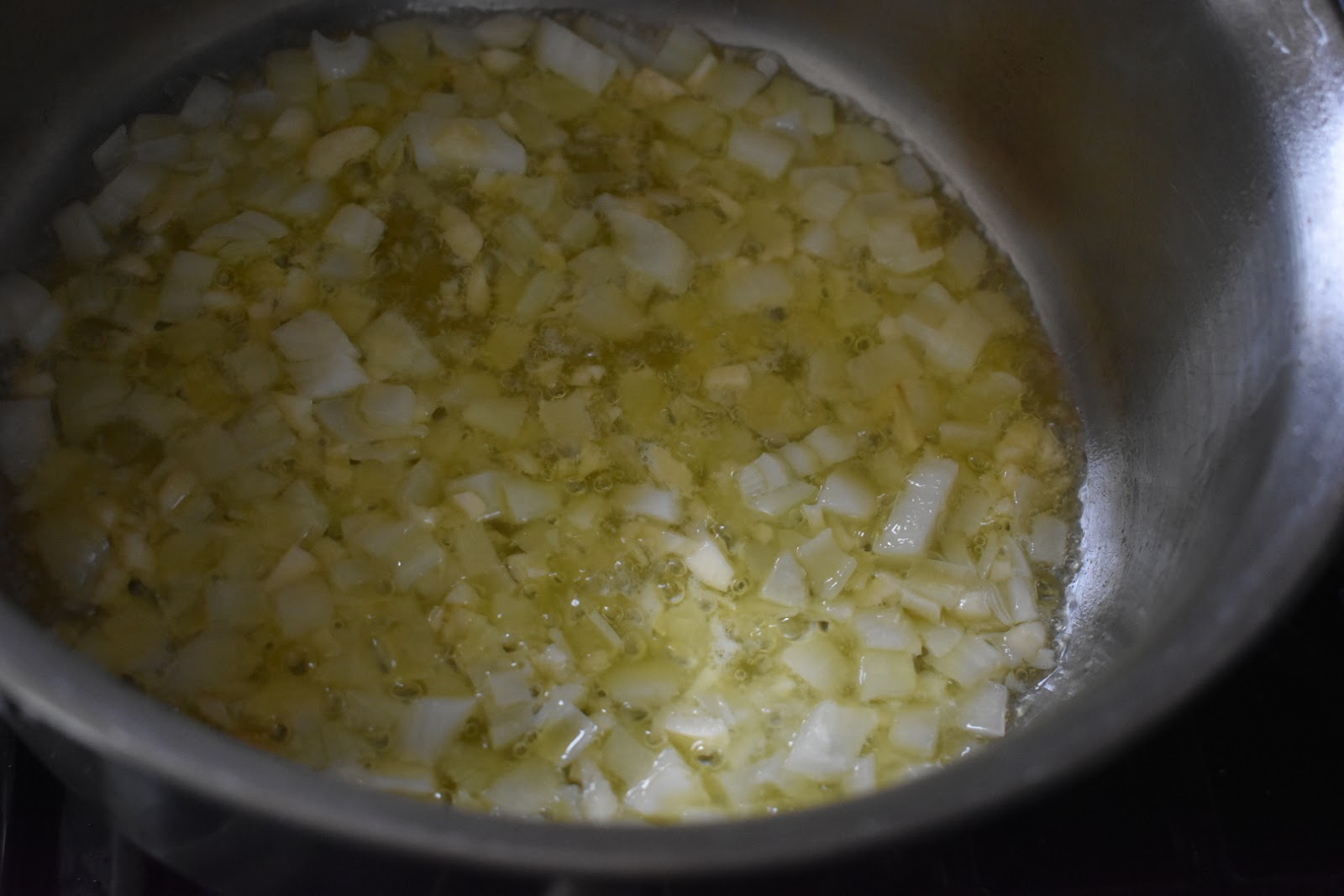1. Melt butter and olive oil in a saucepan over medium heat. Add onion and garlic and cook until fragrant, 1-2 minutes.