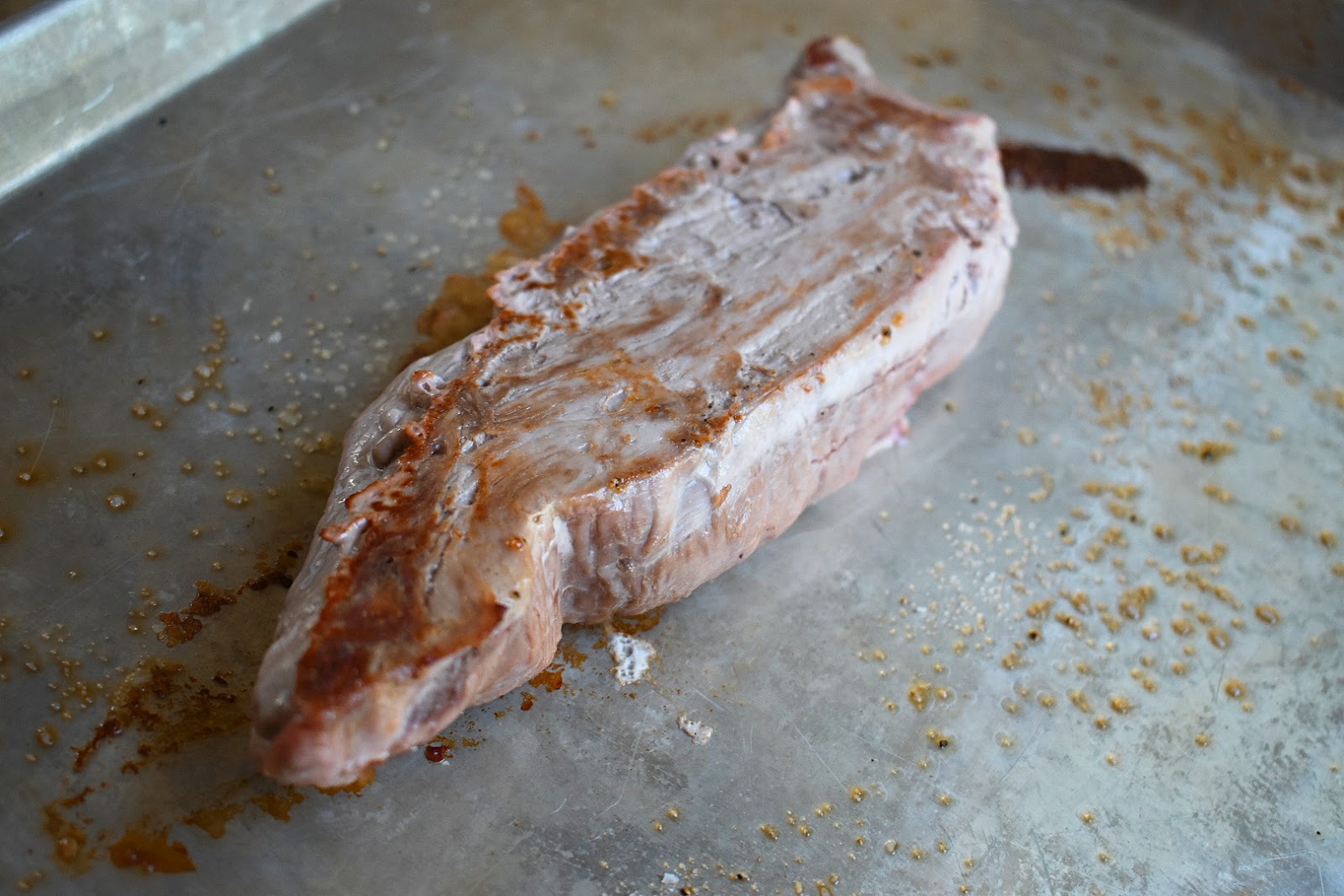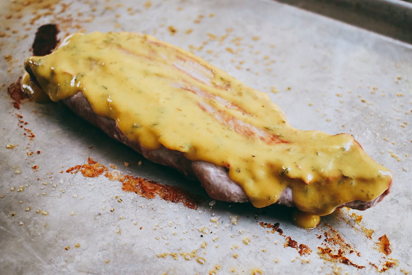 2. Combine the mustard, honey and thyme in a small bowl. Spread over the pork.