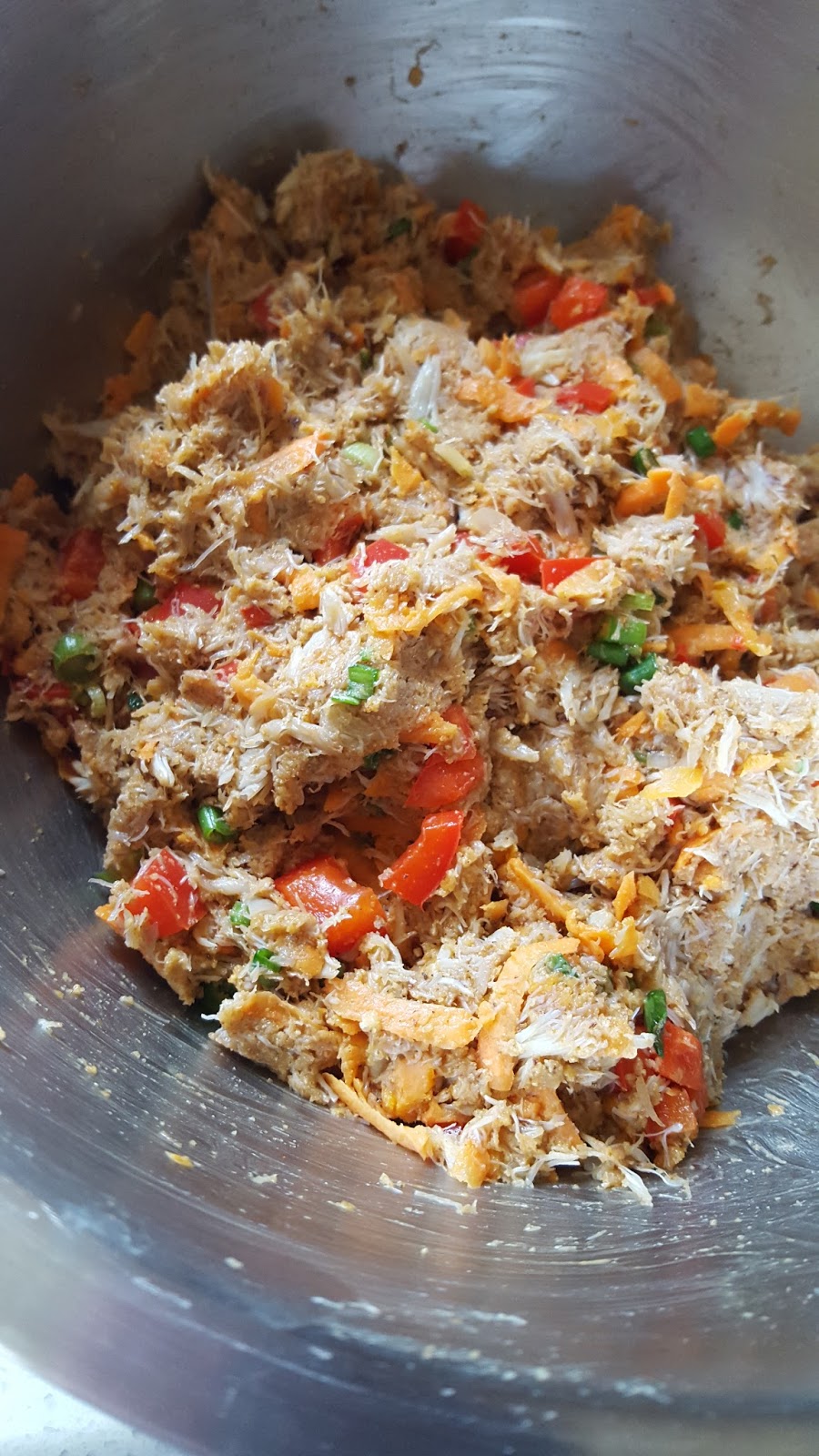 Place crab in a large mixing bowl and add the remaining crab cake